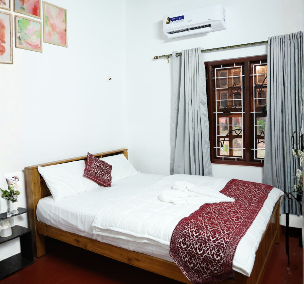 Spacious and inviting, our Double Bed Room at Adam’s House offers the perfect blend of comfort and serenity. Featuring a cozy double bed, airy interiors, and beautiful river views, this room is ideal for couples or friends looking for a peaceful escape. Wake up to refreshing breezes, unwind in a calm natural setting, and enjoy the charm of coastal Karnataka